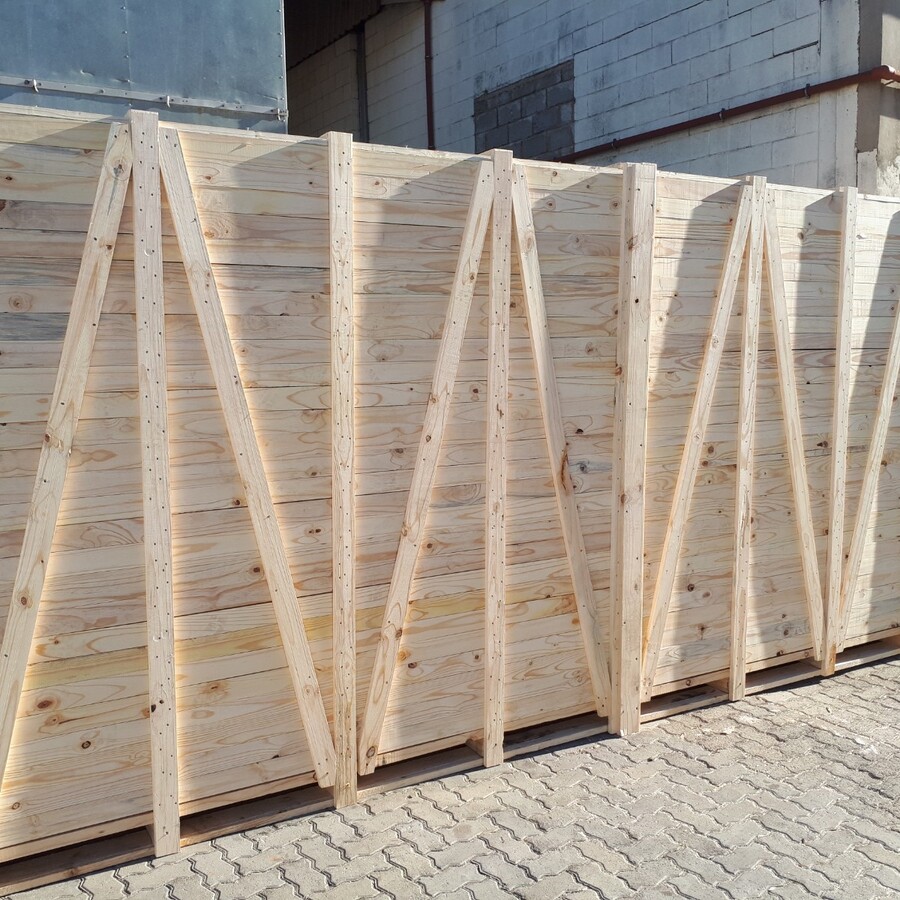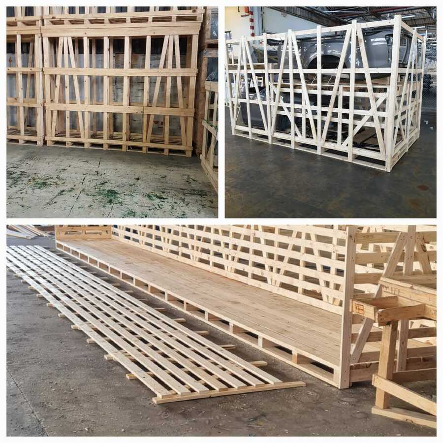Pallet and crate manufacturing from pine timber wood to create wooden shipping containers and platforms used for transporting, storing and packaging goods. All-purpose made or standard.